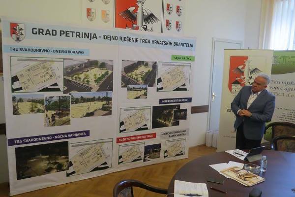 Gradonačelnik je, također, rekao kako se dio trga uređuje i u okolnom dijelu novim fasadama, napravljeno je parkiralište i rub uz sam trg i imperativ u idućoj godini je da njegov izgled bude u pravom smislu riječi onako kako ga Petrinja i njeni građani zaslužuju, ali i ime Trga hrvatskih branitelja. „Vjerujem da će ova ideja saživjeti kroz aplikaciju prema Fondovima i Ministarstvu regionalnog razvoja, gdje i stoje određena sredstva za gradove koji su devastirani u Domovinskom ratu. Na tome radi jedna cijela ekipa, od našeg stručnog tima, PETR-e i svih ostalih koji su bili uključeni i napravili ovu ideju”.