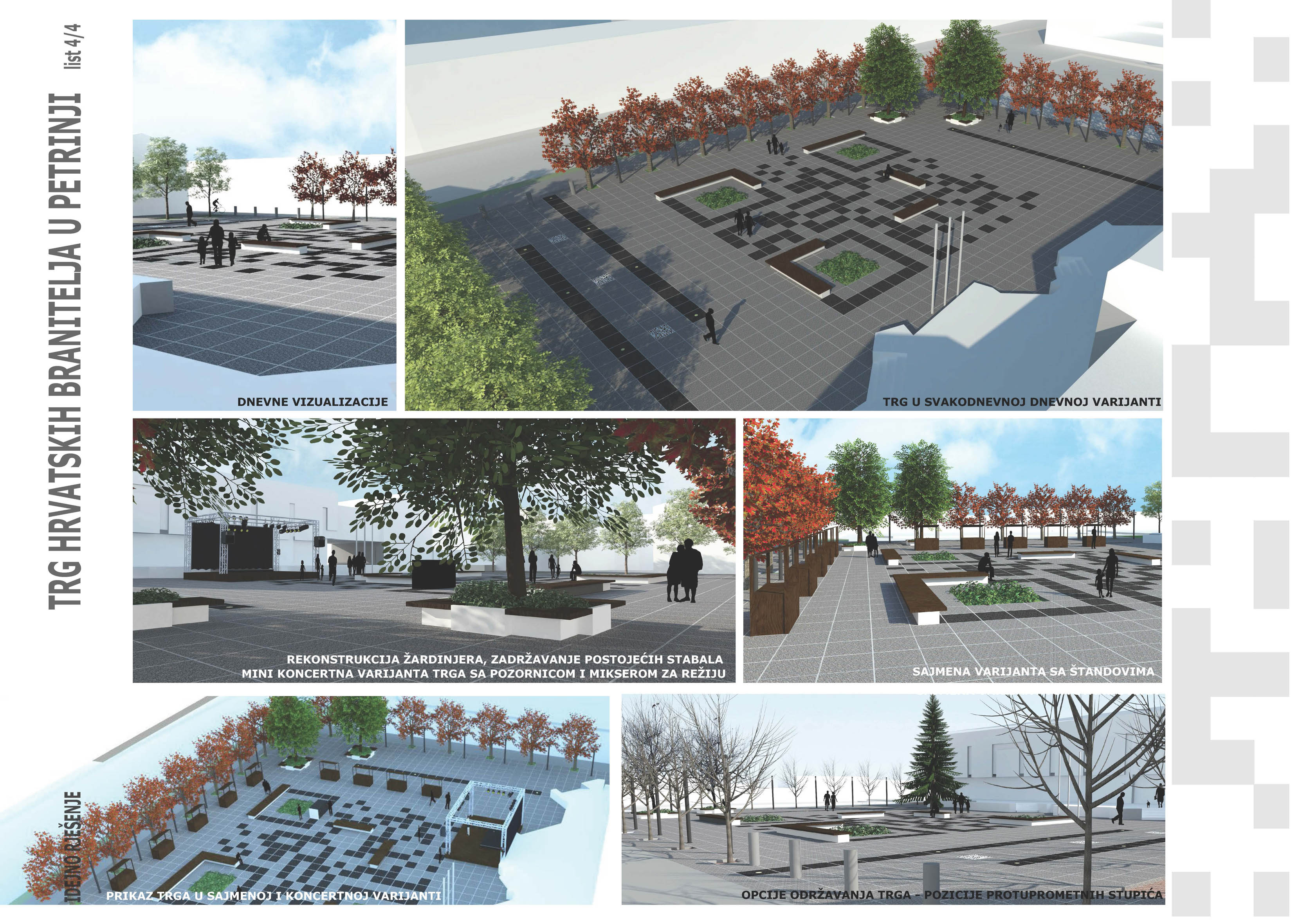 Nakon provedenog javnog natječaja, gradonačelnik grada Petrinje otkrio je novi izgled gradskog trga. Na natječaj su se prijavili brojni stručnjaci, pa i naši kolege krajobrazni arhitekti, od kojih ističemo drugu i treću nagradu na predmetnom natječaju, a pobjedničke timove i rješenja možete pogledati u nastavku.