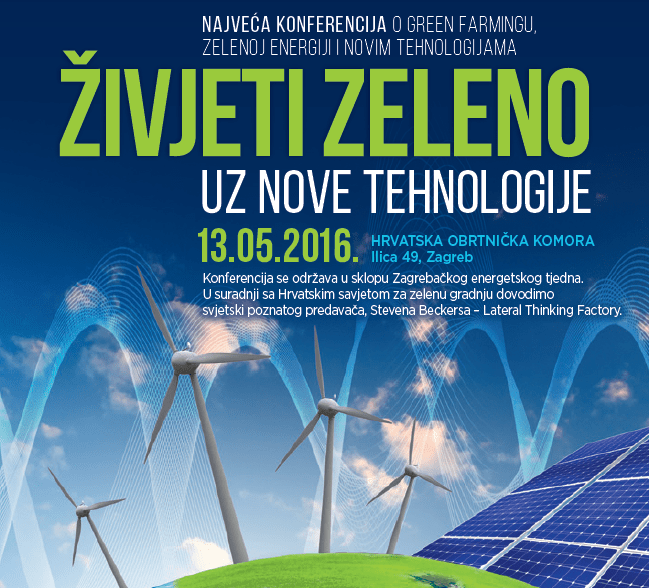 Konferencija će se održati u Hrvatskoj obrtničkoj komori, Ilica 49, Zagreb, u petak, 13. svibnja 2016. te Vas ovim putem pozivamo da ispunite Vašu prijavu i osigurate mjesto na najvećoj konferenciji o URBAN FARMINGU! Hrvatski savjet za zelenu gradnju i Večernji list dovode svjetski poznatog predavača, Stevena Beckersa, voditelja belgijske konzultantske tvrtke Lateral Thinking Factory (LTF), koji je poznat po tome što je razvio globalni pristup održivosti u arhitekturi i urbanom planiranju.