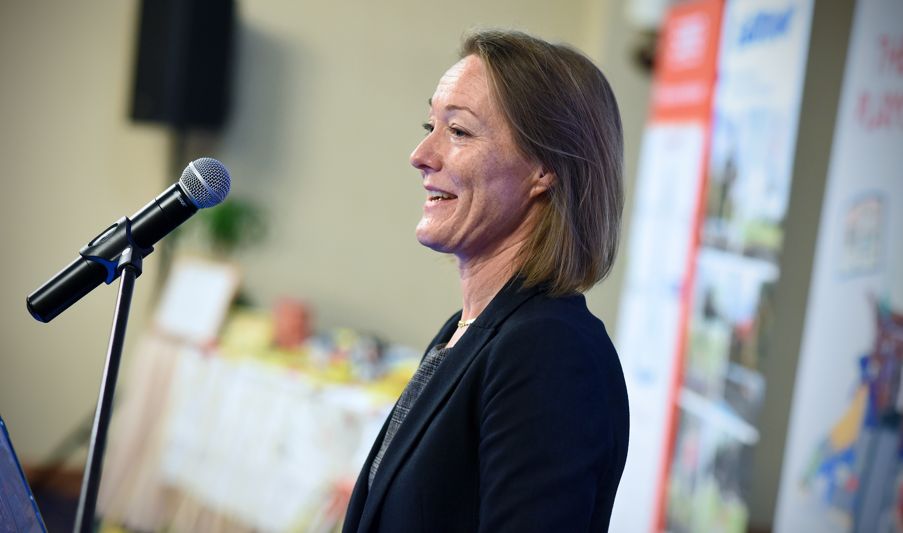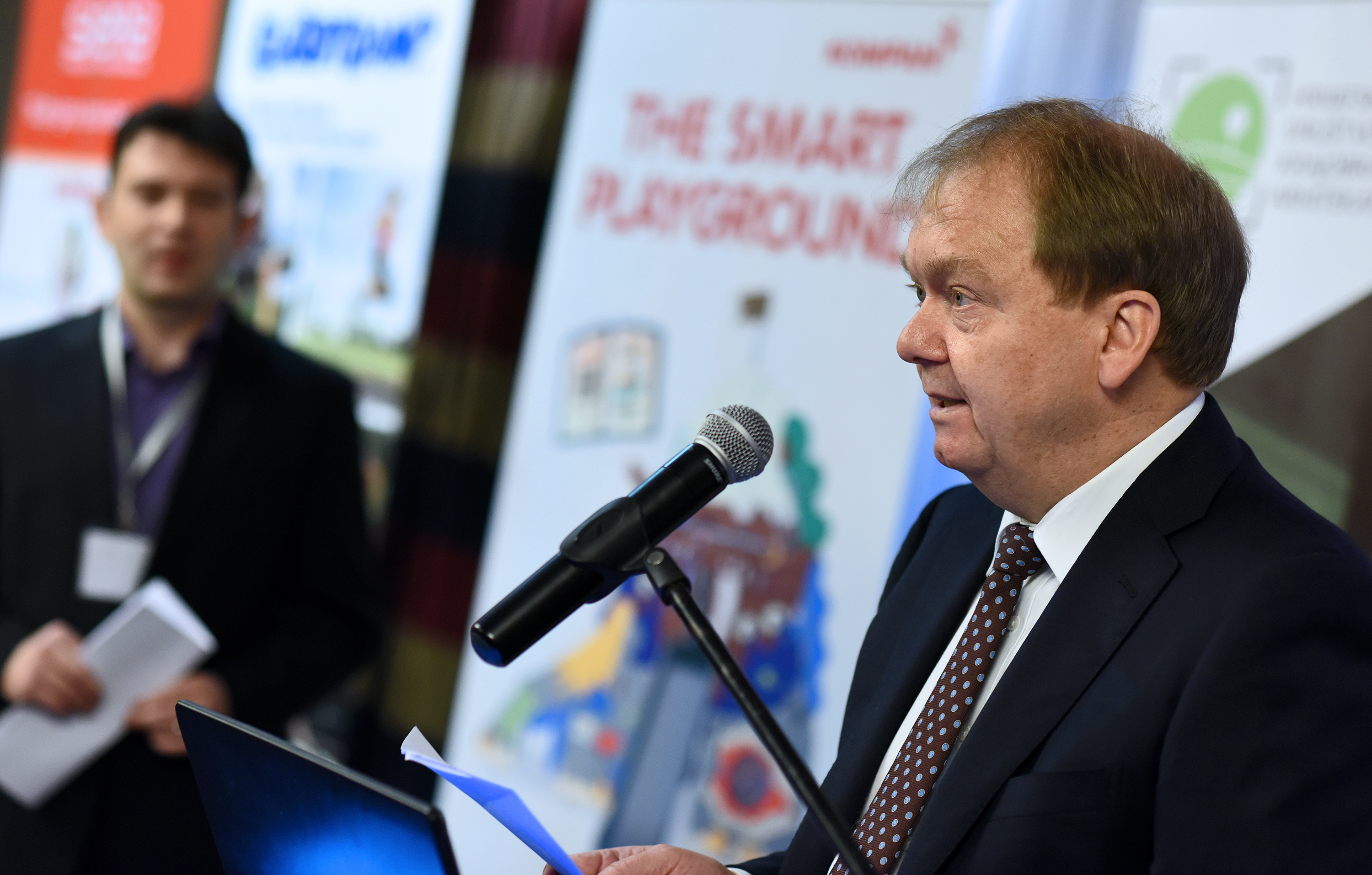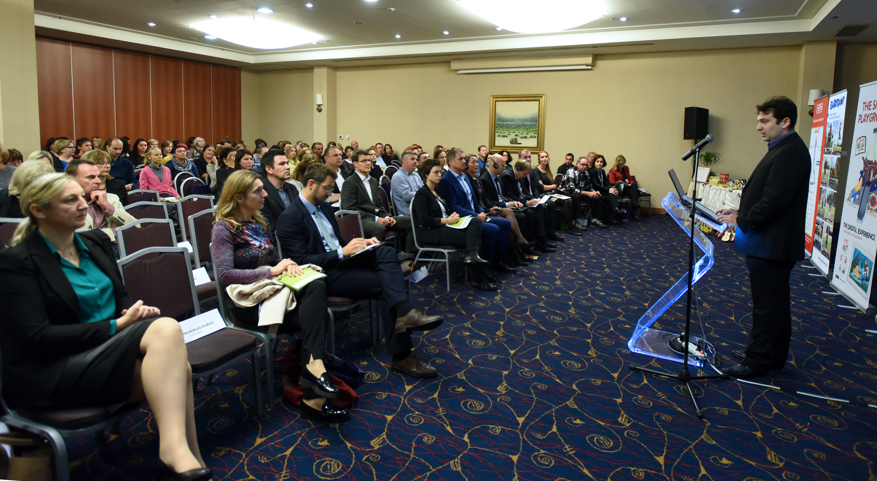 Nakon brojnih uvodnih govora uzvanika, skup je pozdravila i predstavnica stručnog pokrovitelja skupa gđa. Jeanette Fich Jaspersen, iz danske tvrtke Kompan. Gđa Jaspersen predstavila je kompleksne metode proučavanja i stvaranja najboljih rješenja za poticanje igre koja potiče razvoj uma i tijela, interaktivnih i integriranih rješenja koja potiču socijalnu uključenost svih članova društva, a simultano pružaju pristup “modernim” digitalnim tehnologijama i drugim interaktivnim rješenjima.